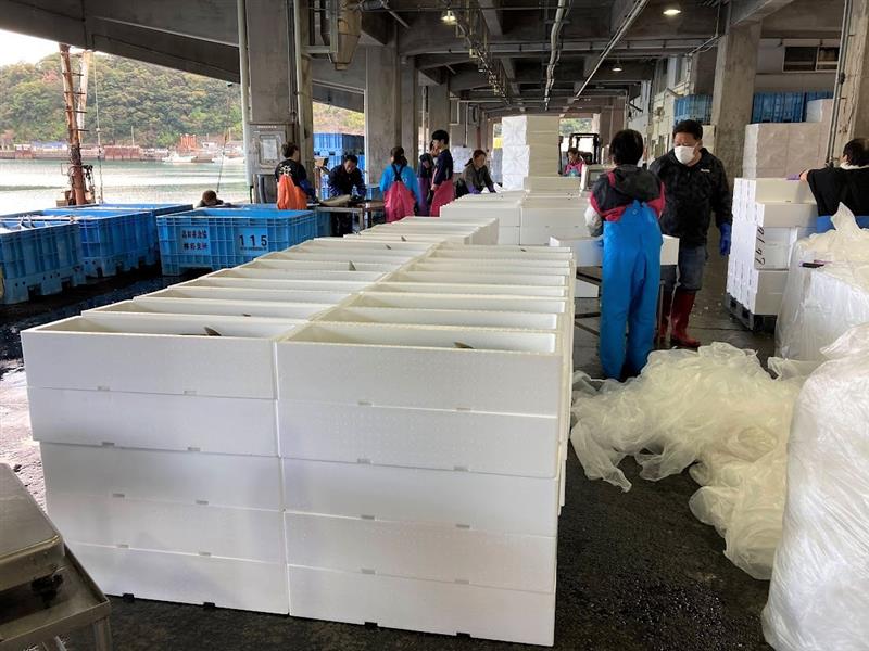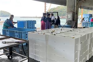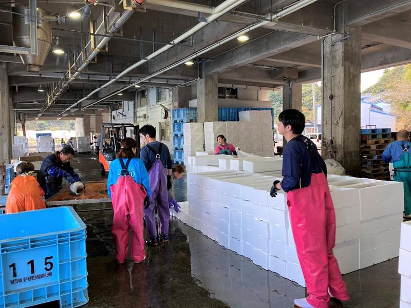・水揚げされた鮮魚の箱詰め・荷造り