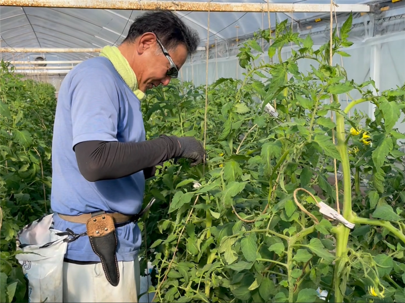 化学肥料や農薬に頼らない有機農業によって一年中トマトを栽培しています。