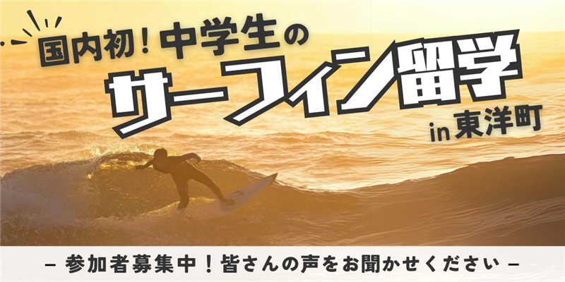 「中学生のサーフィン留学」制度がサーフィンのメッカ東洋町でスタートします。