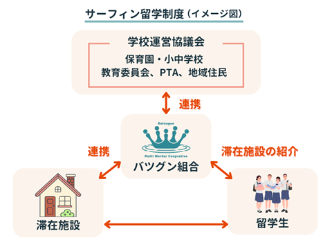当組合は、中学生向けサーフィン留学制度の運営にあたり、以下の役割を担います:
